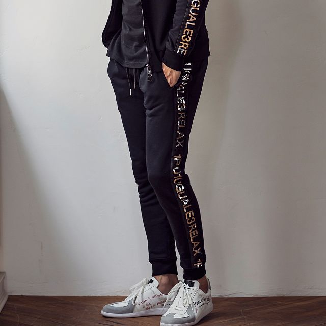 サイドのエンボスロゴが目を惹くスウェットパンツ。