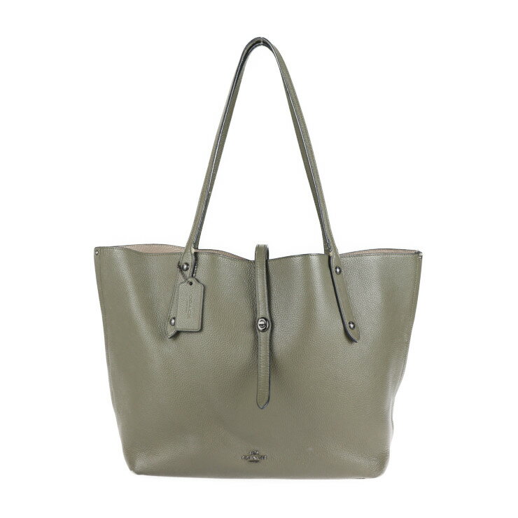 COACH コーチ マーケットトート トートバッグ 37756 レザー オリーブ系 グレージュ系 ショルダーバッグ ハンドバッグ ショッピングバッグ ターンロック【本物保証】【中古】
