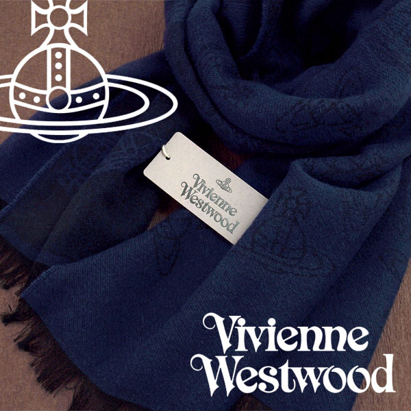 【送料無料】Vivienne Westwood 2017年新作 ヴィヴィアンウエストウッド ヴィヴィアン ストール レディース オーブロゴ柄 ダークブルー VV-K209-DBL