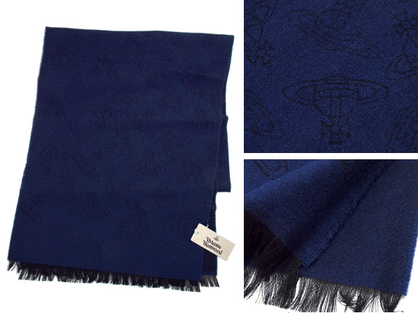 【送料無料】Vivienne Westwood 2017年新作 ヴィヴィアンウエストウッド ヴィヴィアン ストール レディース オーブロゴ柄 ダークブルー VV-K209-DBL
