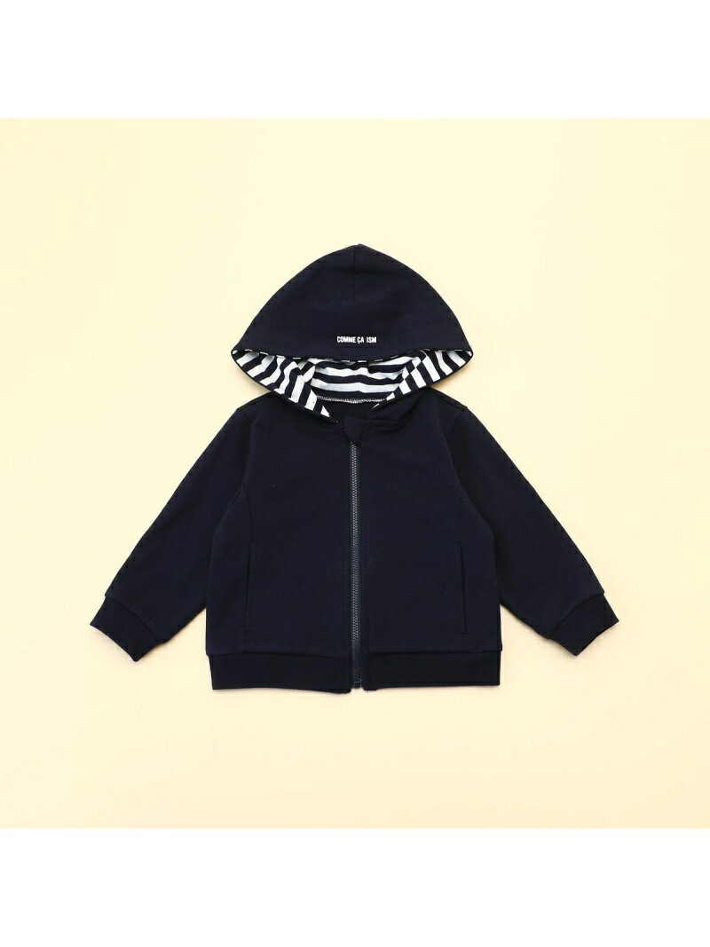 COMME CA ISM(コムサイズム)ミニ裏毛 パーカ(80・90サイズ)《デザイン》■軽い羽織りとしても活躍する、ミニ裏毛のジップアップパーカ。