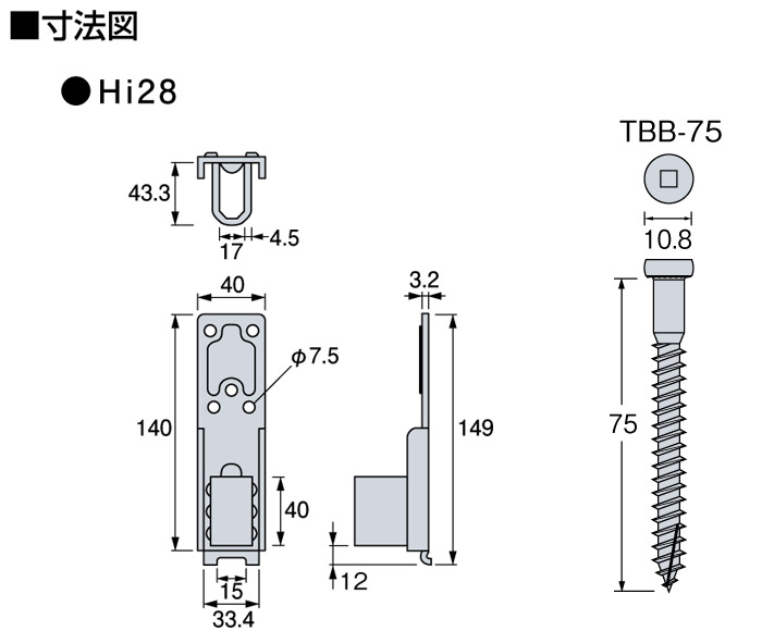 ■サイズ:40×149×3.2(t) ■材質: 板 部:JIS G 3134 SPFH590 U字部:JIS G 3131 SPHC ■表面処理:エコートWH処理 「エコートWH処理」は NOFメタルコーティングス(株)の登録商標です ■付属金物:専用角ビットビスTBB-75(150本) ■重量(kg/ケース):11.6kg ■商品コード:AF4H2800 ■メーカー:株式会社タナカ住宅資材 ■販売単位:30個入り1ケース単位 ■配送・納品: 基本弊社より出荷させて頂きます 在庫が確保できている場合は営業日の午前9時までにご注文頂けますと当日出荷させて頂きます ※在庫が無い場合は除きます ※お急ぎの場合はお問い合わせ(メール・お電話)下さい (947-944) ■1F柱頭、2F柱頭、柱脚使用の場合 ●柱の引き抜き耐力が37.6kNを超える箇所を「ビスどめホールダウンHi43」の両引きでとめ付ける場合には 「高耐力両ネジボルト75.3kN」を必ず使用してください ●「ビスどめホールダウンHi28」を柱頭部に使用するには「偏芯座金付ボルト2※」が最適です 直上に管柱がある場合は 両引きボルトM16で引き合わせることも可能です ※43.2kN(べいまつ類時)のめり込み耐力が確保できます ●柱の引き抜き耐力が25kN以上の箇所には「オメガアンカーボルトM16※」を使用してください(推奨) (※Fc21コンクリート 基礎幅135mm 埋め込み深さ200mmの場合の短期許容引張耐力は53.3kNになります) ●横架材から金物までの寸法(締め代)は100mm以上を確保してください その他仕様・使用方法・アンカーの埋込深さなども十分に確認してください【 関連製品 】 ■ビスどめホールダウンHi28 AF4H28 30個単位 ■ビスどめホールダウンHi43 AF4H43 25個単位 ※専用角ビットビスTBB-75の締め付けには 3番四角ビット(別売品)をご使用ください ※「ビスどめホールダウンHi28」を柱頭部に使用するには「偏芯座金付ボルト2」が最適です 直上に管柱がある場合は 両引きボルトM16で引き合わせることも可能です ■偏心座金付ボルト2 M16×550mm AF5H55 10本単位 ■偏心座金付ボルト2 M16×650mm AF5H65 10本単位 ■偏心座金付ボルト2 M16×700mm AF5H70 10本単位 ■偏心座金付ボルト2 M16×800mm AF5H80 10本単位 ※柱の引き抜き耐力が25kN以上の箇所には「オメガアンカーボルトM16※」を使用してください(推奨) (※Fc21コンクリート 基礎幅135mm 埋め込み深さ200mmの場合の短期許容引張耐力は53.3kNになります) ■オメガアンカーボルトM16 基礎と土台の接合 M16×550mm AA3422 10本単位 ナット付属
