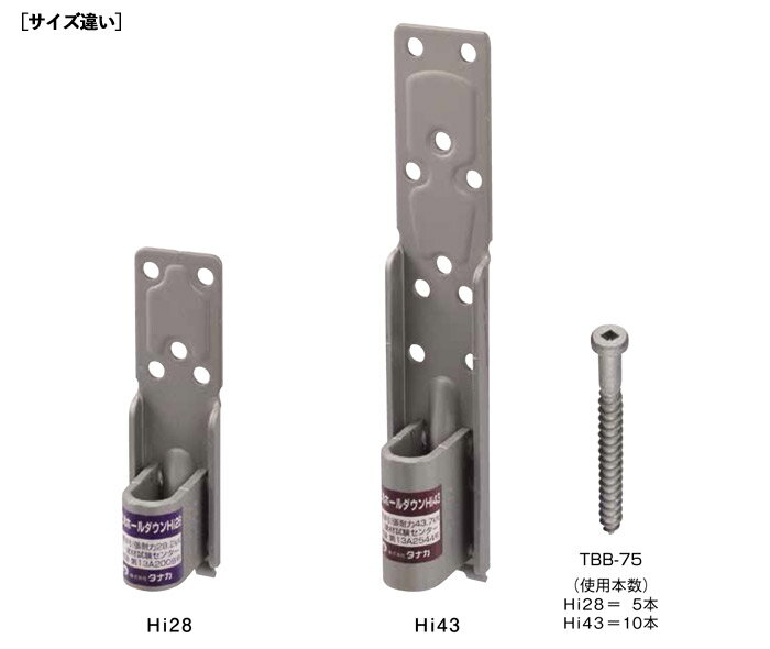 オメガー ビスどめホールダウンHi28 43.7kNまで対応可能な高耐力 クロムフリーでビスどめタイプのホールダウン金物 最近ではプレカットなど上棟木材と一緒に金物も納品さえれるケースが殆どでしょうが 数量が足りなかった… 増改築で必要になった… 手きざみ現場で不意に必要になったり…と 多少は手元に持っておきたい建築木造住宅の金物では? 設計図書に合わせてしっかりとした木造住宅を… ■告示1460号第二号(へ と ち り) ■N値5.3以下 ■性能試験済: 性能試験済金物とは 第三者機関において 規定された試験・評価方法に従って学識経験者及び熟練した専門の技術者が性能を確認し その証として評価文書が発行された金物を指します 当社の性能試験金物は、一般財団法人建材試験センター ハウスプラス確認検査株式会社 公益財団法人日本住宅・木材技術センターにおいて性能評価を受けておりますので 用途・耐力値の範囲内で安心してご使用ください 用途・特長 基礎と柱の緊結、柱と横架材の緊結 上下階の柱相互の緊結に使用します 1:Hi28は28.2kN Hi43は43.7kNまでの柱の引き抜き耐力に対応するホールダウン金物です 2:ボルト用ホールは従来品と同様にクリアランスを設け ホールダウン用アンカーボルト取り付け位置の微調整が可能です 3:従来品に比べて取り付けビスの本数を少なくし 施工性を向上させました(当社比較) 4:高張力鋼板を採用し 軽量化と耐力を両立させた環境に配慮したクロムフリー対応商品です 5平ワッシャーは使わずに施工が可能です 6:一財・建材試験センターによる品質性能試験済商品です 施工方法 1:本体のボルト用ホールにアンカーボルトまたは縦ボルトを通し ボルト用ホール上部からナットの締め代25mm程度を出すように位置を合わせます 2:専用角ビットビスTBB-75を規定本数でとめ付けてください 3:アンカーボルトまたは縦ボルトをナットで締め付けてください ※専用角ビットビスTBB-75の締め付けには 3番四角ビット(別売品)をご使用ください 注意事項 ●指定の用途以外には使用しないでください ●けが防止のため手袋等をはめて作業を行ってください ●柱にパネル枠材(45mm厚以下)を介する場合は「枠材用ビスどめホールダウンHi」をご使用ください ●枠組壁工法には「2×4用ビスどめホールダウンHi」をご使用ください。