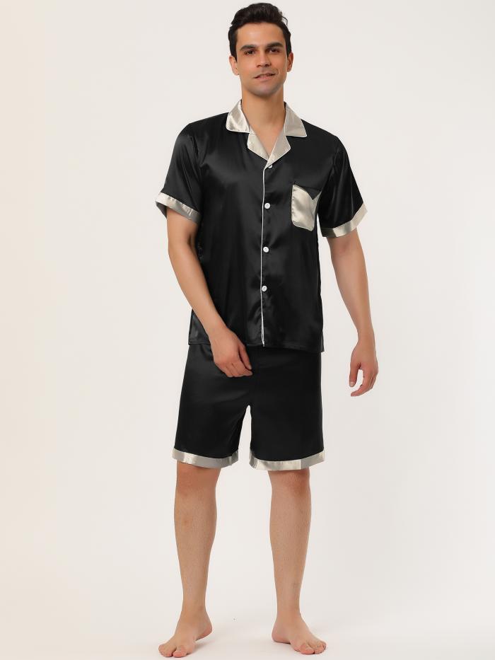 商品詳細 特徴 【属性1】半袖、コントラストカラー、ボタン留め、胸ポケット、ノッチカラー、軽量サテンパジャマセット。