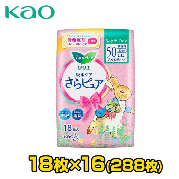 ロリエ さらピュア 吸水ナプキン 50cc ふんわりタイプ18枚×16(288枚) 吸水ライナー 吸水ケア パンティーライナー 尿もれ 尿漏れ 女性用 花王 Kao 【送料無料】