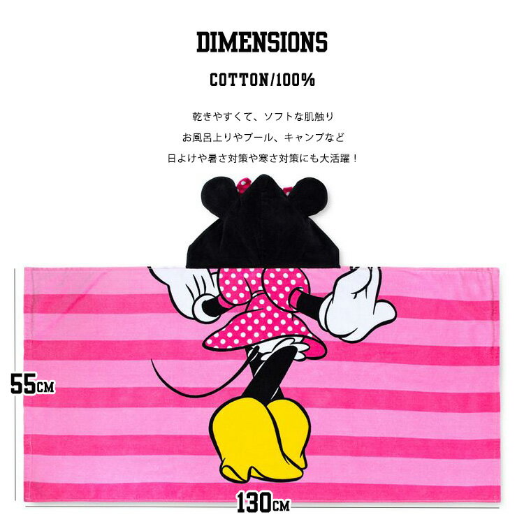 ■アメリカ製品について ■お買い物ガイド 【検索キーワード】 ディズニー ミニーマウス ディズニーグッズ ミニー フード タオル フード付き ビーチタオル 綿 スイムタオル バスタオル フード付きタオル こども 子ども 子供 キッズ 3歳 4歳 5歳 6歳 7歳 8歳 100% コットン 綿 スイムタオル 大判 プール 海水浴 輸入 アメリカ インポート Hooded Towel