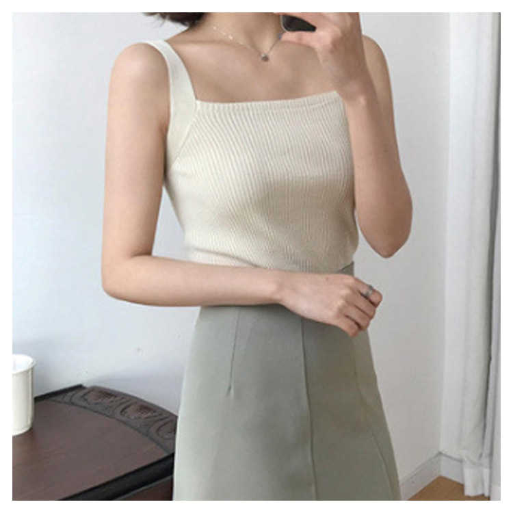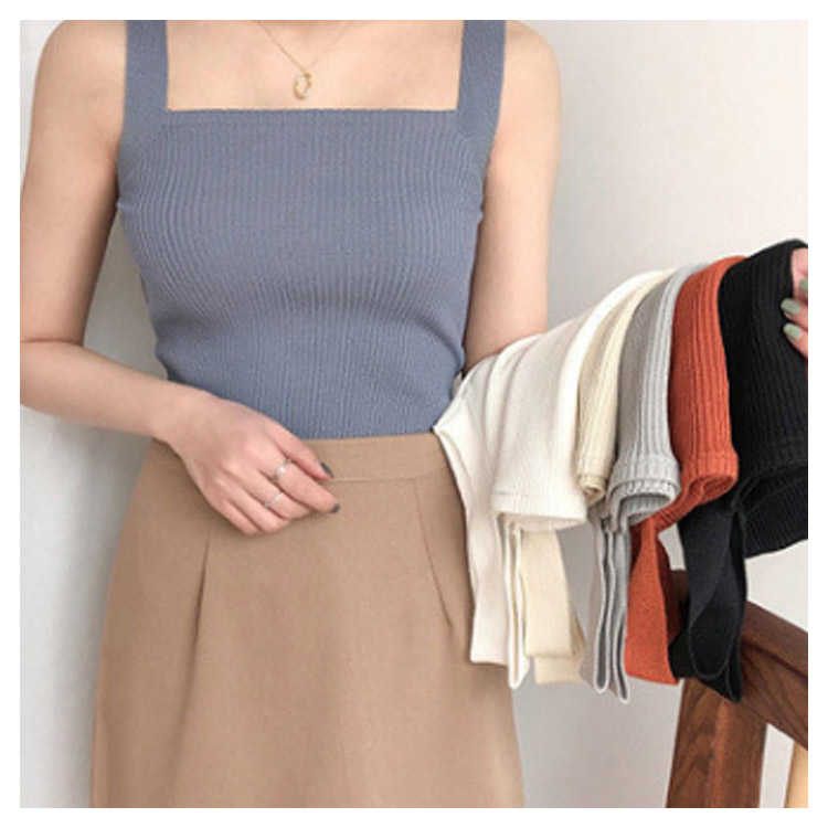 送料無料 ニット キャミソール レディース タンクトップ 着回し 重ね着 カジュアル トップス スクエアネック 薄手 伸縮性 ノースリーブ 通勤 お出かけ 部屋着 シンプル 春夏秋