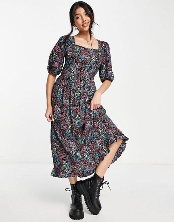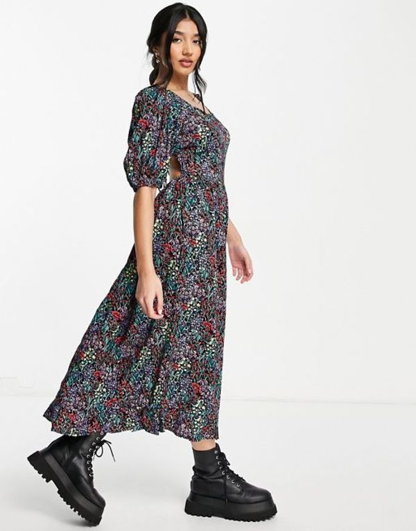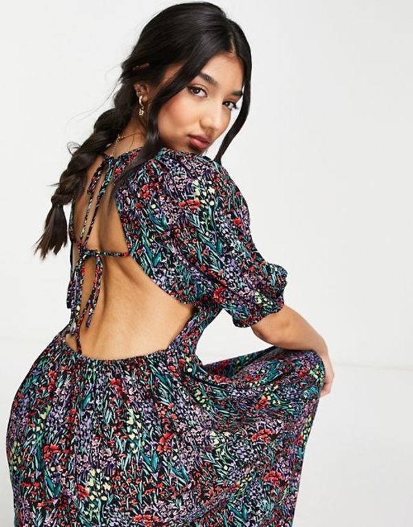 インフルエンス レディース ワンピース トップス Influence square neck midi dress with open back in floral print Multi