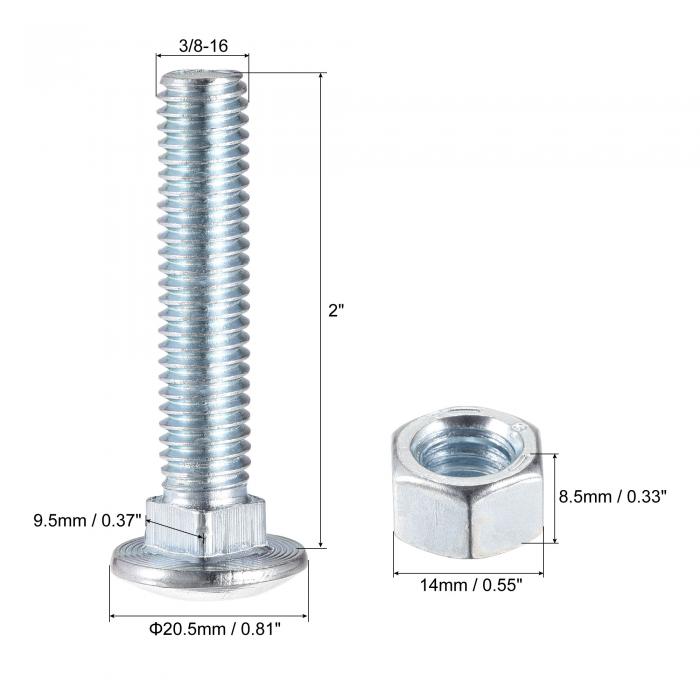 ソウテン スクエアネックキャリッジボルト ナットとワッシャー付き 炭素鋼コーチボルトネジ 9.5 mm-16x51 mm 10セット