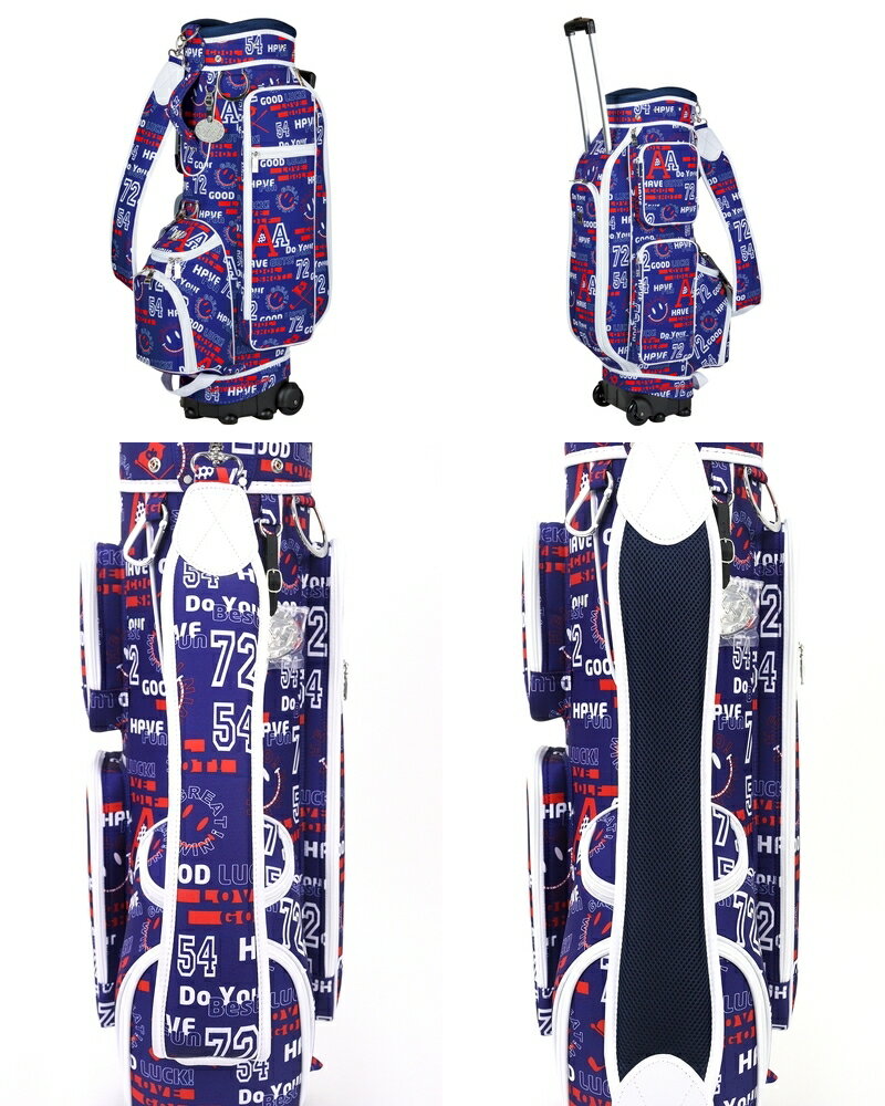 メンズ レディース商品詳細 ゴルフ ブランド名 ウィンウィンスタイル WINWIN STYLE 商品名 キャディバッグ 9.0型 47インチ対応 キャスター付き ポップな総柄 スマイル柄 ロゴメタルプレート ゴルフバッグ ゴルフ メーカー希望小売価格 55000円(税別) 表記サイズ F(F) 実寸サイズ F(F) 全長(フード有)126cm 縦口径23.5cm 横口径20cm 6分割 3セパレート 重量3.8kg ポケット8個 素材 ポリエステル100% 機能 ネームプレート付 傘立て丸カン付 カラビナ付 Dカン付 保冷・保温ポケット付 カラー ネイビー(NV) 説明 HELLO!WINWIN Trolley CART BAG ハローウィンウィントロリー サイズ:9.0型(47インチ対応) 持ち運びに便利なキャスター付バッグの登場です。