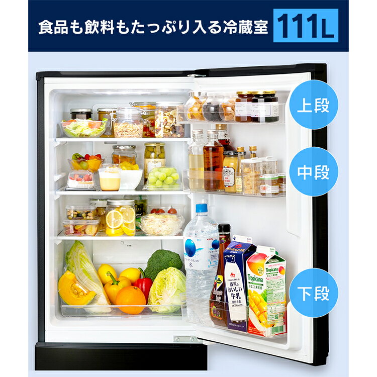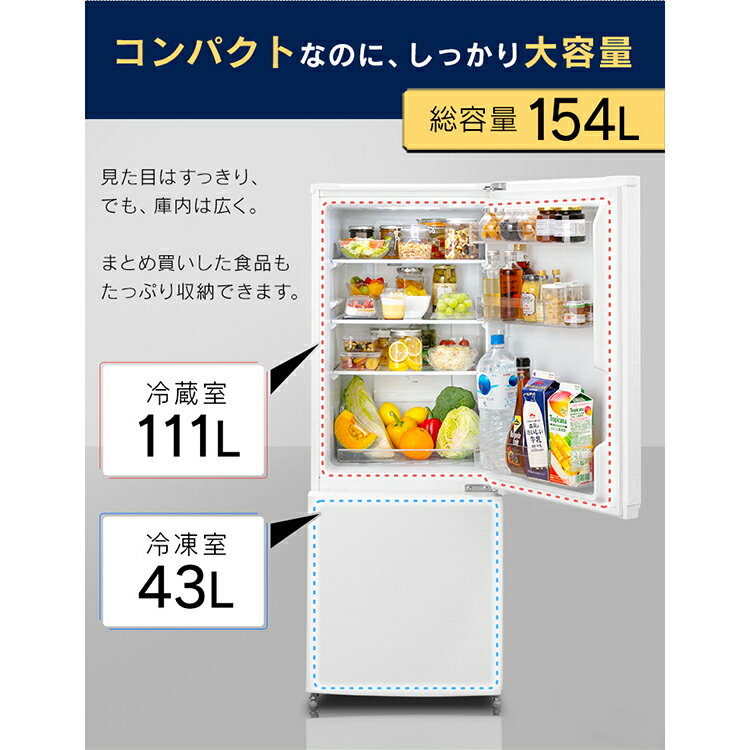 容量154L(冷蔵111L+冷凍43L)■冷蔵室食品も飲料もたっぷり入る111L。