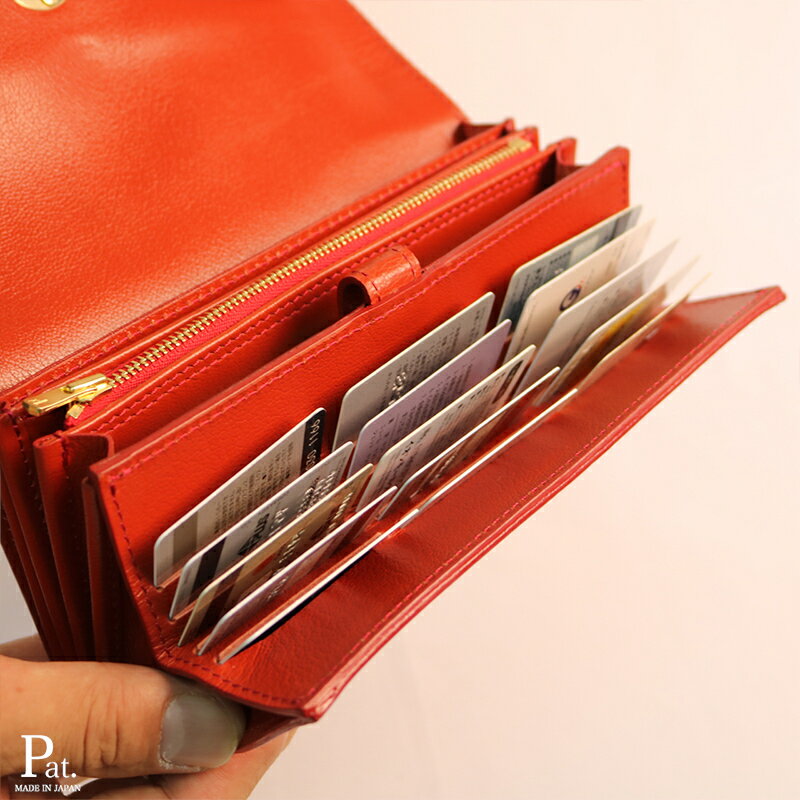 送料無料 長財布 カードたくさん入る長財布 22秋冬 本革 レザー 長財布 カード大容量収納モデル レッド 金具ゴールド シルバー 100rme プレゼント 誕生日 記念日 ギフト 春財布