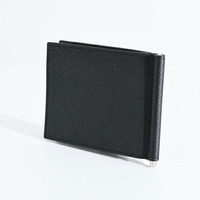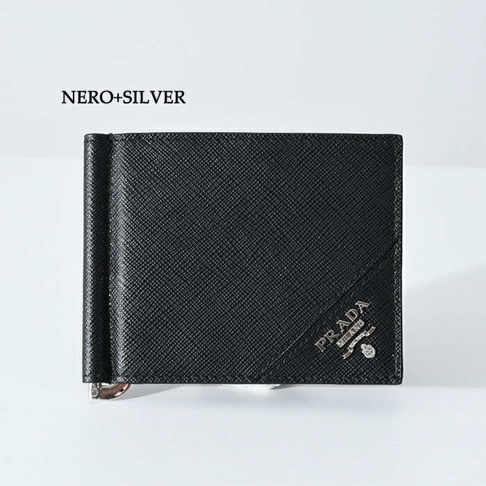 PRADA プラダ 財布 マネークリップ コンパクト財布 SAFFIANO レザー 2MN077 QME メンズ NERO ブラック シルバー スリム ミニ財布 コンパクト カードケース 二つ折り 人気 おすすめ ギフト プレゼント
