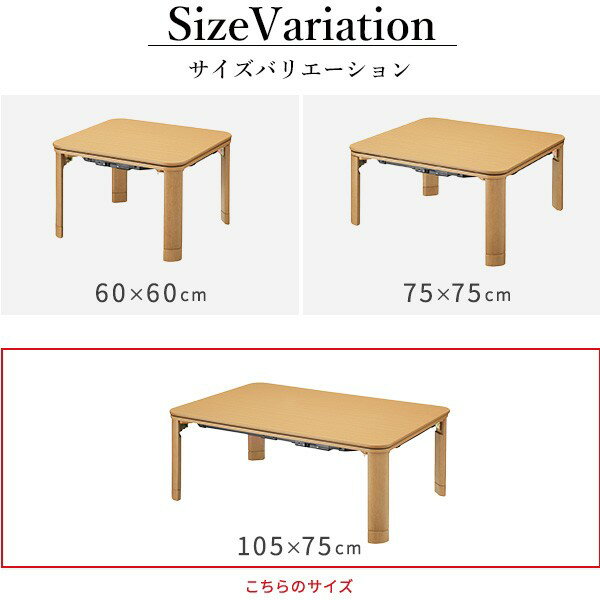 こたつ 折りたたみ 正方形 フラットヒーター折れ脚こたつ 105x75cm 保温綿入りはっ水こたつ布団エルク柄 2点セット ローテーブル 節電 高さ調節 継ぎ足 木製 木目 在宅 こたつカラー:ブラウン / 布団:グレー 【サイズ】 ■こたつ本体 幅105x奥行75x高さ40cm