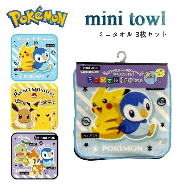 ポケモン 3枚組 ミニタオル | ポケットモンスター ピカチュウ イーヴイ ポッチャマ ナエトル ヒコザル プチタオル 子供 子ども こども ハンカチタオル ハンカチ タオル フェイスタオル 保育園 幼稚園 小学校