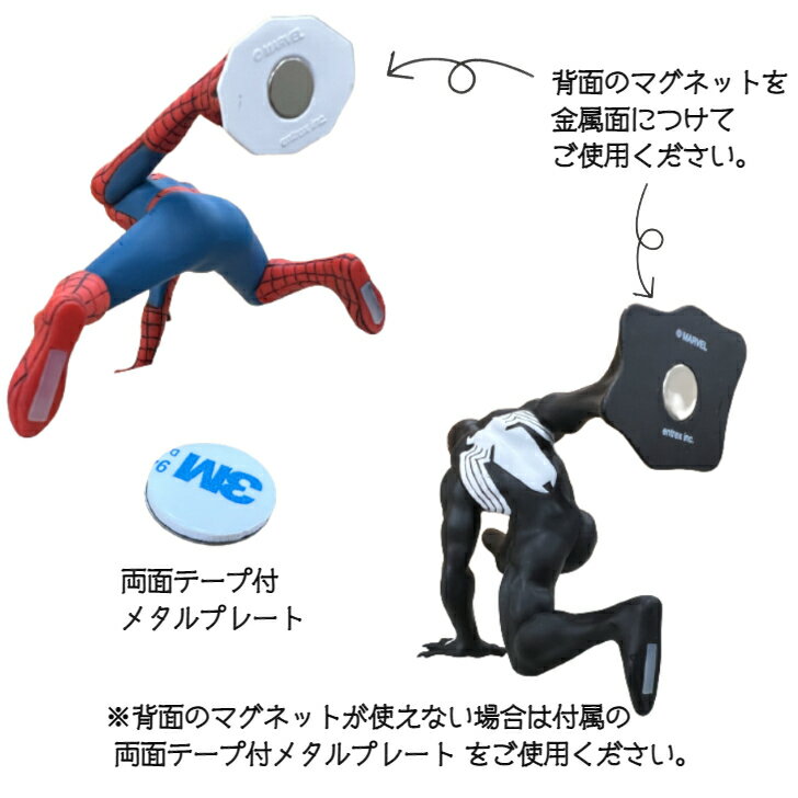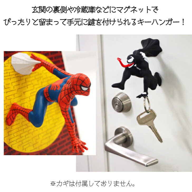 スパイダーマン マグネットキーハンガー ヴェノム キーハンガー アントレックス キーキャッチャー フック マグネット 両面テープ プレート付 キーフック