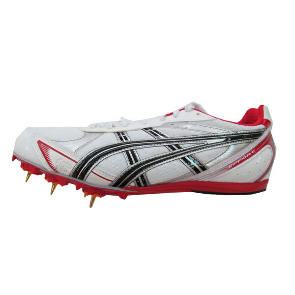 【メーカー】アシックス 【商品名】エフォートEF 【品番】TTP506 【カラー】ホワイト×ブラック(0190) 【素材】甲材:合成繊維・人工皮革 底材:合成底・ゴム底 【スパイク】金属製(取替式)アンツーカー用12mm 【備考】 オールウェザートラック・アンツーカートラック兼用 レンチ付き ※店頭展示品・旧品のため、数箇所に汚れあり。