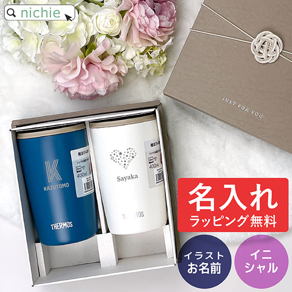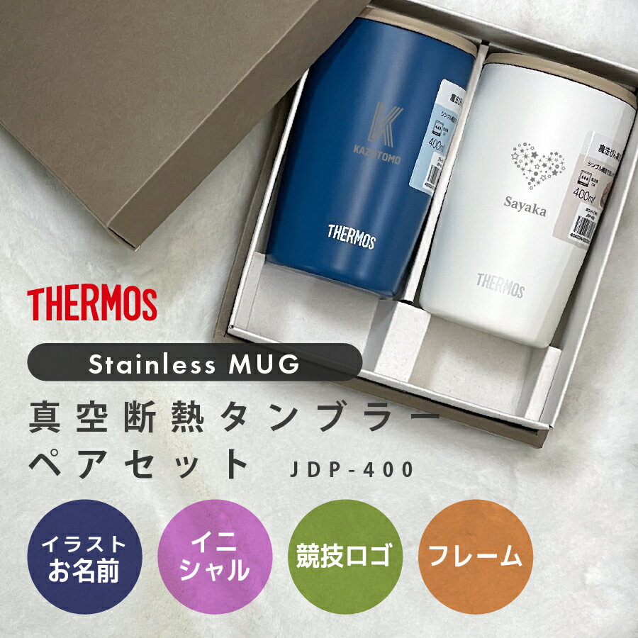 サーモス タンブラー 名入れ ペア Thermos JDP-400 ペアセット 400ml ペアタンブラー 2個セット 保温 保冷 名前入り 名入れタンブラー 保温マグカップ フタ付き 蓋付き ステンレス おしゃれ 誕生日 プレゼント ギフト ラッピング nichie ニチエー 【RC】