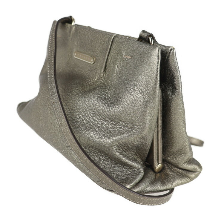 美品 CELINE セリーヌ ショルダーバッグ レザー ガンメタリック がま口【本物保証】【中古】