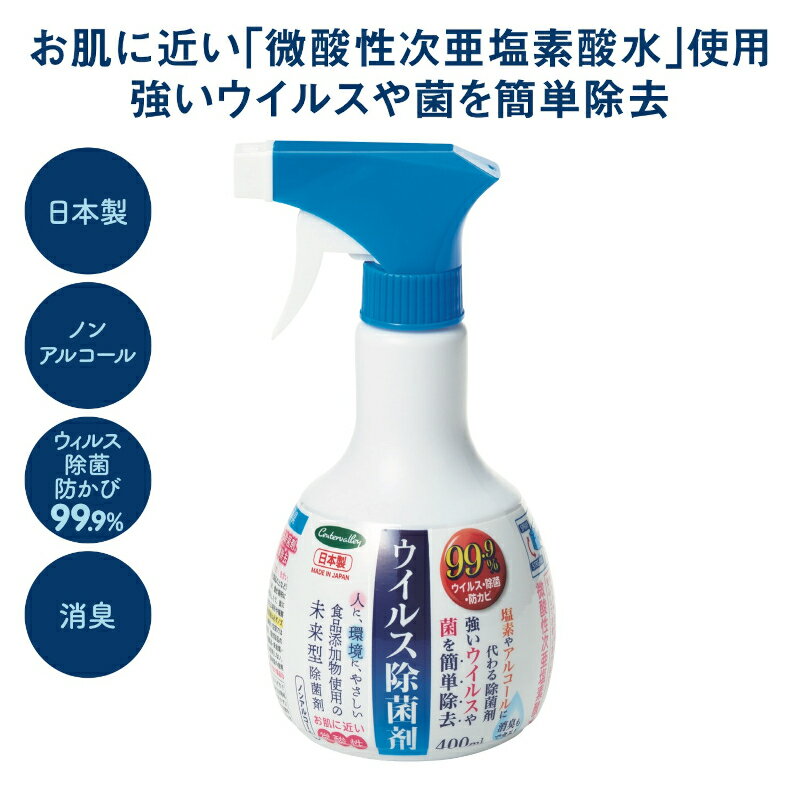 【ウイルス除去剤400ml】【30個セット販売/送料無料】日本製 ノンアルコール 消臭 ハンドスプレー 便利 除菌99.9% 感染症 予防 対策 店舗 オフィス 学校 保育園 幼稚園 学童