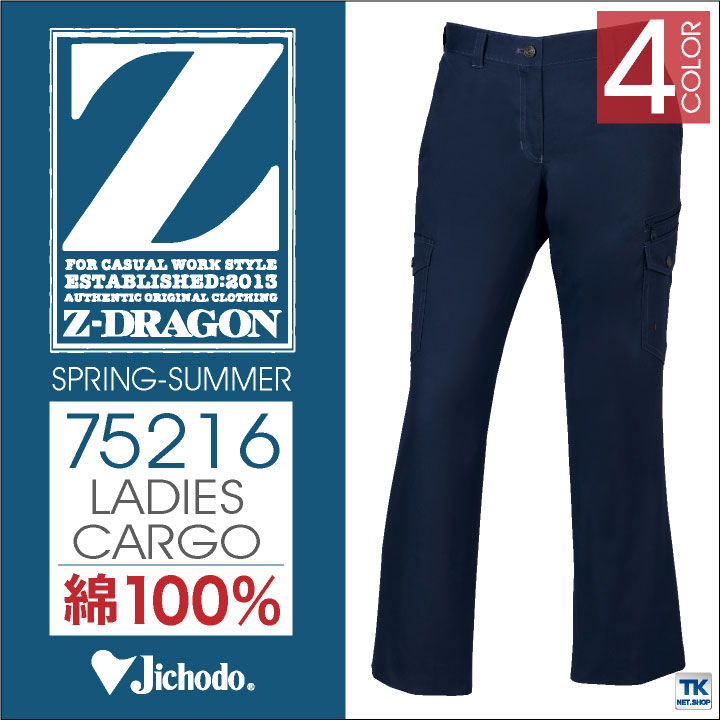 作業ズボン レディースカーゴパンツ 作業服 作業着 Z-DRAGON 自重堂 カジュアルワーク 春用 夏用 綿100% ワークパンツ カーゴパンツ jd-75216-b