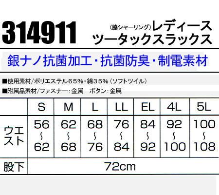 S〜LL 3L(EL) 4L〜5Lレディース ツータック スラックス クロダルマ314911の商品詳細 ナノサイズの銀粒子を生地に加工。
