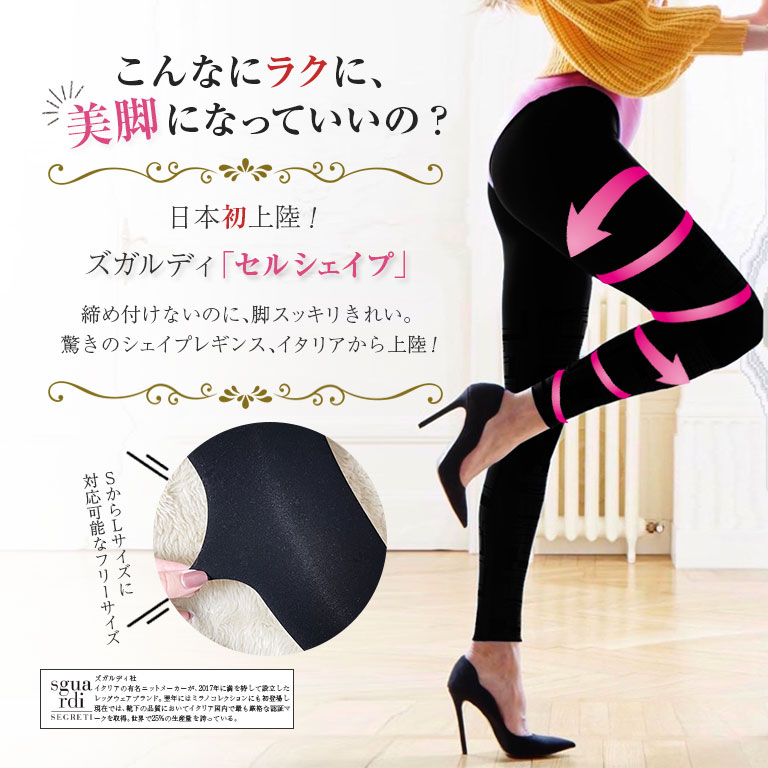 セルシェイプ 50デニールレギンスタイプ BK - イタリア ズガルディ レギンス 締め付けない 美脚 脚 きれいに 見せ 細見せ 細見え 細く 見える おしゃれ シェイプアップ ラク 楽 スリム タイツ スパッツ 普段履き 就寝 ナイト お出かけ 消臭 インナー ブラック